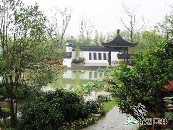 第二屆中國綠化博覽會(huì)之杭州園,又名“緣園”。以西湖美麗的傳說《白蛇傳》為設(shè)計(jì)脈絡(luò),將故事提煉成斷橋相逢、同心定緣、平湖秋月、雷峰夕照四個(gè)精華部分,融入到工程綠化作品中,運(yùn)用多桿叢生植物和木本花境為造景元素,平臺(tái)、小橋、埠頭、沙灘、景石,勾勒水鄉(xiāng)風(fēng)韻;粉墻、黛瓦、圓門、方亭、水榭,追憶江南情懷,由此達(dá)到了景中有情、情中有景,用園林綠化的丹青妙筆描繪出一幅情景交融的江南風(fēng)情畫卷。漫步緣園,仿佛回到千年前的西湖:風(fēng)景如畫、才子佳人、江南煙雨、風(fēng)光旖旎,斷橋之上,許仙與白娘子洋溢纏綿悱惻的浪漫愛情傳奇……