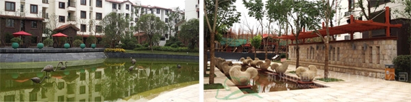 在紫荊東郡小區(qū),水景隨處可見,從主入口兩側(cè)近50米的景觀橋水景,到入口正前方一個大型的石雕噴泉,再到小區(qū)里面幾條主干道交匯的十字路口的小型地面噴泉,中心水景上的圓形石雕噴泉,特別是不遠處的動物噴泉雕塑,只只鶴低頭凝思,細長的水流從鼻端的出水口處流出,落入下方的水池里,更是格外引人注目。“這些水景小品具有的藝術(shù)特性與審美效果,加強了整個景觀環(huán)境的藝術(shù)氛圍,成為讓空間環(huán)境生動起來的關(guān)鍵因素,在提高小區(qū)藝術(shù)品質(zhì)和景觀形象的同時,更給人們帶來美的享受。”楊經(jīng)理如是說。