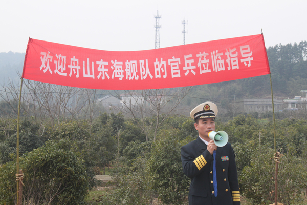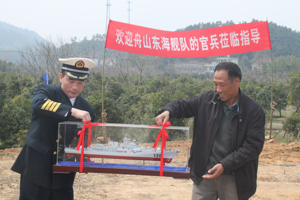 3月31日上午12點,舟山東海艦隊某支隊官兵們的車輛到達泉口苗木基地,現場舉行了熱烈的歡迎儀式。儀式由杭州市園林綠化工程有限公司總經理張炎良主持,杭州市林水局副局長楊文鐘代表杭州市政府對官兵們的到來表示了熱烈的歡迎,并發表了熱情洋溢的致辭;舟山東海艦隊某支隊呂政委代表官兵們致答謝辭,并贈送給楊副局長一個海軍軍艦模型,表達他們對杭州市政府送樹行為的感謝。