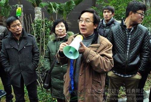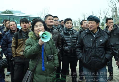 每到一個工程現場,工地負責人都先介紹工程的施工情況,然后,帶領大家進行參觀,并隨時解答觀摩組一行提出的各種問題。每項工程觀摩結束的時候,三位專家都會集中點評,從苗木種植、植物搭配、水景營造、地形整理等各方面指出工程施工中存在的優勢與不足,并提出需要改進的地方。