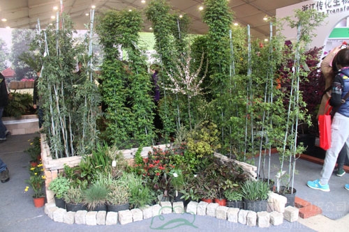 22日上午,浙江(中國)花木城的展廳里人潮涌動,自然的濕地景觀,古樸的庭院,美輪美奐的花境園,超大的“會呼吸”的綠墻……風格迥異的情景展示讓人目不暇接。而在展區的西北角,是一個綜合型展區:一排排透明的玻璃瓶里展示著研發中心的組培苗;整齊擺放的穴盤里是生產中心的扦插苗;后面的是運營中心造型優美的組合盆栽、園藝飾品、盆器等;中間的庭院展示區,低矮的墻角花壇里,一蓬紅艷艷的杜鵑,向人們吐露著春的美麗,生動的流水點綴一旁,引得大人和孩子爭相上前拍照;最里面一個木平臺上擺放著一套戶外家居,既是采供中心人員的洽談區,也是景觀的一部分。這,就是杭州市園林綠化工程有限公司的展區。