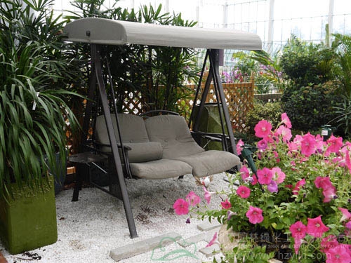 蕩秋千,是兒時(shí)記憶中最快樂(lè)的玩樂(lè)方式之一,在那一蕩一蕩的秋千中,曾留下了多少歡聲笑語(yǔ)和快樂(lè)的童年時(shí)光。穿過(guò)為園藝愛(ài)好者設(shè)計(jì)的庭院景觀,眼前的這處小景,最引人注目的就是這架做工精美又不失穩(wěn)重的布藝秋千,輕易地讓人聯(lián)想到一家人在此玩樂(lè)的溫馨畫(huà)面。這處現(xiàn)代庭院風(fēng)格的小景,線條簡(jiǎn)約,顏色鮮明,鋪設(shè)木平臺(tái)以烘托溫馨的生活氣息,鐵藝的室外桌椅以及精致的裝飾用品,無(wú)不顯示出對(duì)美好生活的享受與追求。這種類(lèi)型的小景不受庭院風(fēng)格限制,庭院的主人可以根據(jù)自己的愛(ài)好,營(yíng)造出獨(dú)屬于自家的景觀特色。
