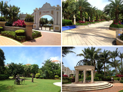 走進(jìn)森海灣,紅瓦白墻、單邊回廊的建筑設(shè)計(jì),與郁郁蔥蔥的植物一起,構(gòu)建了一個海灣童話城堡世界,營造出閑適、愜意、溫馨、雅致的居住氛圍。據(jù)項(xiàng)目負(fù)責(zé)人葉偉華介紹,作為一個高端住宅區(qū),森海灣對園林景觀的要求比較高,小區(qū)以中軸景觀帶為主景,設(shè)有游泳池、休閑草坪、疊水等,種植大王椰、霸王棕、鳳凰木、重陽木、中東海棗、老人葵等大樹襯托整個中央主景。各處庭院則選擇豐富多彩的樹種,采用不同的手法布局與建筑完美融合,透露出精細(xì)的西班牙情調(diào),用簡單詮釋浪漫,點(diǎn)綴悠閑的度假生活,使整個園林充盈著濃郁的熱帶風(fēng)情。