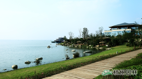 該項目的景觀工程施工總面積21.5萬平方米,分兩個標段進行。其中,一標段施工面積13萬平方米,由杭州市園林綠化股份有限公司承建。施工內容包括:綠化種植、土建施工、景觀小品、水景、景觀建筑、給排水系統及景觀照明系統等工程。自2012年6月開工,至2013年5月竣工,歷時近一年。