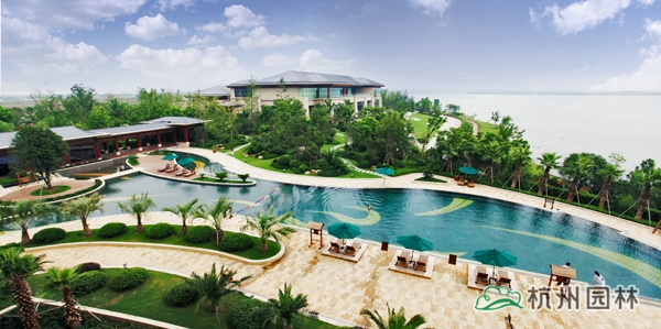 如今,走進吳江東太湖溫泉度假酒店,開闊大氣的入口景觀,整齊劃一的行道樹,道路兩側花境式的植物組團,首先帶給人一種高端、原生態的感覺。隨著蜿蜒的園路不斷延伸,更多的園林美景一一呈現:開闊的草坪起伏有致,自然式的花境布置清新雅致,造型獨特的黑松、女貞盡顯莊嚴華貴,婚禮草坪處處充滿浪漫氣息,露天泳池彌漫著濃郁的熱帶風情,溫泉泡池區懷舊氣息撲面而來,湖邊的觀景平臺則將自然美景盡收眼底……大氣中盡顯華貴雍容,細節中隨處可見精致品味,文化氣息處處流轉,自然美景比比皆是,園林與建筑渾然一體。“雖由人作,宛自天開”,是對該項目最凝煉的贊譽。