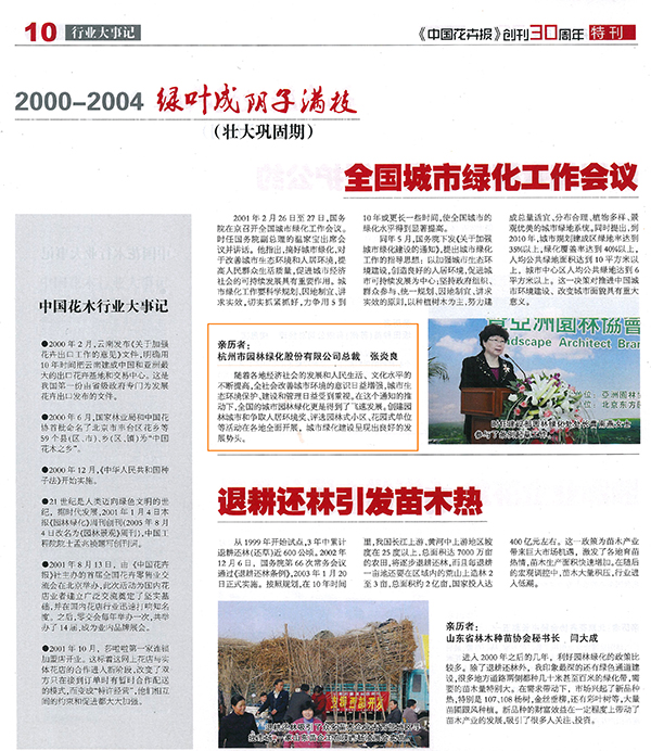 【中國花卉報】創刊三十周年特刊之2000-2004 全國城市綠化工作會作