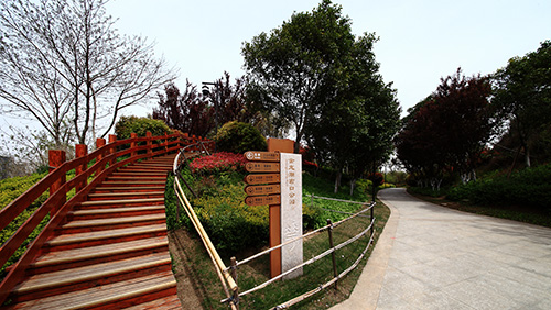 為恢復植被,修復裸露的山體,工程中應用了大量的植物,其中,榔榆、喜樹、樸樹、三角楓、黑松、香樟、銀杏、無患子、女貞、欒樹、七葉樹、五角楓、楓香、雪松、烏桕、廣玉蘭、黃連木、黃金槐、馬褂木等喬木50余品種,2.3萬余株,鄉(xiāng)土樹種占88%;垂絲海棠、映山紅、櫻花、紫薇、金絲繡球、含笑、紫葉李、茶梅、紅梅、紅櫨等花灌木100余品種,2.5萬余株;紅葉石楠、金森女貞、扶芳藤、南天竹、灑金珊瑚、水果蘭、六道木、檉柳、衛(wèi)矛、無刺枸骨、毛鵑、連翹、金鐘、迎春、紅花檵木等綠籬40余品種,面積約4.1萬平方米;各種宿根、球根、時令花卉和水生植物,如薰衣草、金雞菊、郁金香、鳶尾、牡丹、金絲桃、珍珠梅、繡線菊、美人蕉、荷蘭菊、蒲公英、亞菊、玉龍草、八仙花、瓊花、月季、薔薇等80余品種,面積約2.8萬平方米;鋪設草坪及地被麥冬等面積約8.7萬平方米。豐富的植物應用,使得原本裸露的山坡披上了綠色的盛裝,公園內,春有百花爭艷,夏有綠蔭匝地,秋有金色滿園,即使到了冬天,也仍能看到滿山的綠色與生機。