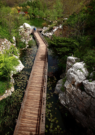 整個南北坡突出宕口景觀主體,設計4米觀光道570米、各種園路2000余米,配合多種步行方式并存的立體休憩交通網(wǎng)絡。