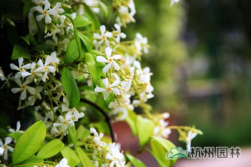 5月的畫境·青山湖花園中心,意大利白花絡石藤花開正茂,螺旋狀的白色小花,像極了兒時玩的風車造型,遠遠看去,就像很多白色的風車掛在樹上一樣。清風徐來,那滿樹的繁花似乎就要轉動起來,漂亮極了。