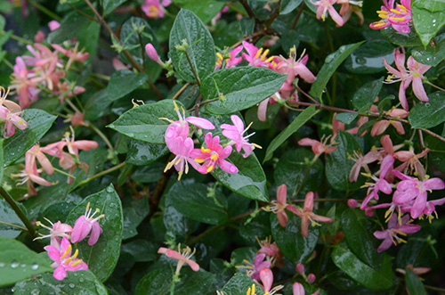 我是忍冬科忍冬屬植物,落葉灌木,新葉嫩綠,老葉墨綠色泛藍色,花粉紅色,花期4-5月,漿果亮紅色,果期9-10月。因其花色美麗,著花濃密,耐修剪,易于養護,可在混合花境中作為中后層次的植物材料使用。 看我這么秀美,還不帶我走!