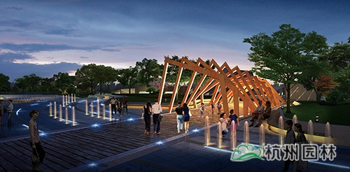 渡航廣場:鉆石形狀的綠坡結合船型夾板造型,寓意破浪前行的渡船,象征肥西人民開拓進取的時代精神。