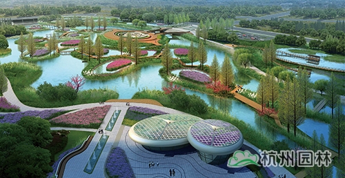 樂活園藝主題區:以家庭園藝花園為主,是公園的圩田濕地體驗中心,水道如巷,河汊如網的圩田農藝景觀,呈現出田園牧歌般的意境。包含飄帶走廊、水蕩花田等景點。