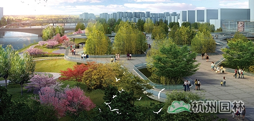 本區位于基地的東段,以健康生活、都市活力為主題,打造集文化藝術、生態景觀、娛樂休閑、健康生活為一體的城市水岸濕地。