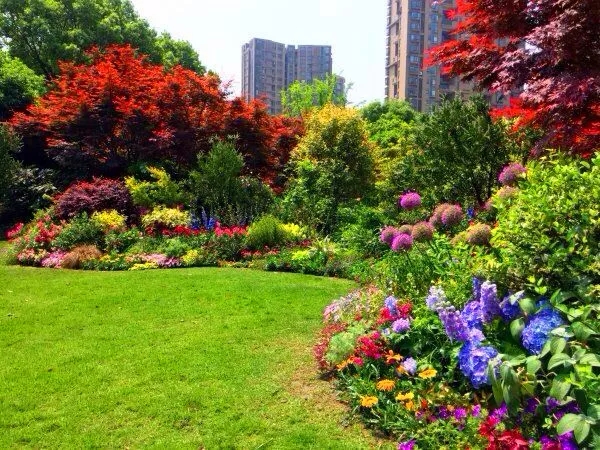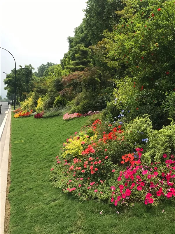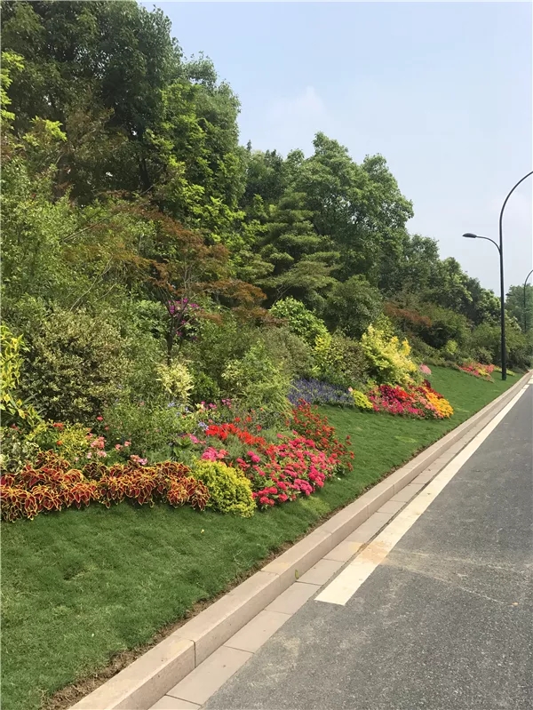 在植物搭配方面,花色搭配既要美觀,又要自然,避免使用強烈的對比色,群落配植要遵循疏密有致原則,保證每株植物都能各有所美。