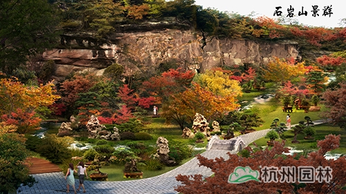 結合石巖山上有先照寺、一覽亭遺址,補充秋色葉樹種,突出石巖望秋的意境,結合鵝鼻峰八仙采藥的傳說布置牡丹草藥園,展現湘湖養生文化。