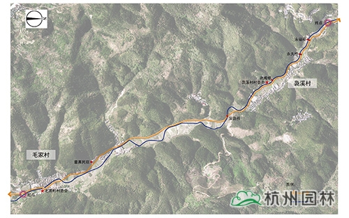 本次設計范圍為Y503鄉道(毛家村--裊溪村段)沿線的景觀改造提升,長度約為3公里。改造提升內容主要為道路沿線兩側的建筑立面整治、荒地覆綠、花壇整治、護坡擋墻梳理更新、新增溪邊平臺、老橋修復、廣場整治等。