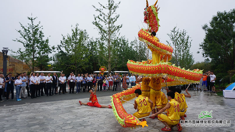 在寧波城市主題日活動現場還進行了奉化布龍非遺文化表演。在浙江園主入口,只見龍在飛騰,人在翻舞,龍身迎風,呼呼有聲,恰似蛟龍出海,帶來翻江倒海的磅礴氣勢,令人屏息凝神,目不暇接。這些舞龍的少年來自于奉化高級中學舞龍隊,他們曾在2010年浙江省第二屆鄉村舞龍大賽中獲得金獎。