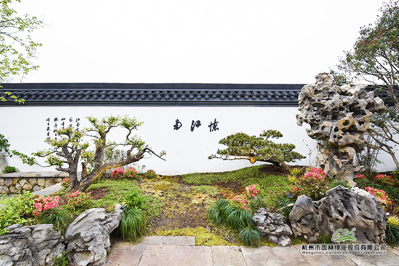 再往里走,富春山居照壁前的造型黑松和紅花檵木,一左一右,遙相呼應(yīng),樹姿優(yōu)美,枝干舒展,仿佛熱情歡迎遠(yuǎn)道而來的客人。這兩棵樹,是深化設(shè)計(jì)團(tuán)隊(duì)跑遍全國重要苗圃挑選回來的,讓最美的一面呈現(xiàn)在游客面前。