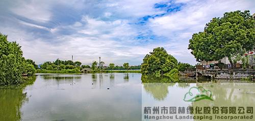 五杭村位于杭南村的東北部,兩村相距不遠,其美麗鄉(xiāng)村建設內(nèi)容主要包括村口景觀、文化禮堂院內(nèi)部分景觀、公園廣場景觀、房屋外立面整治、道路鋪裝、水環(huán)境治理等。