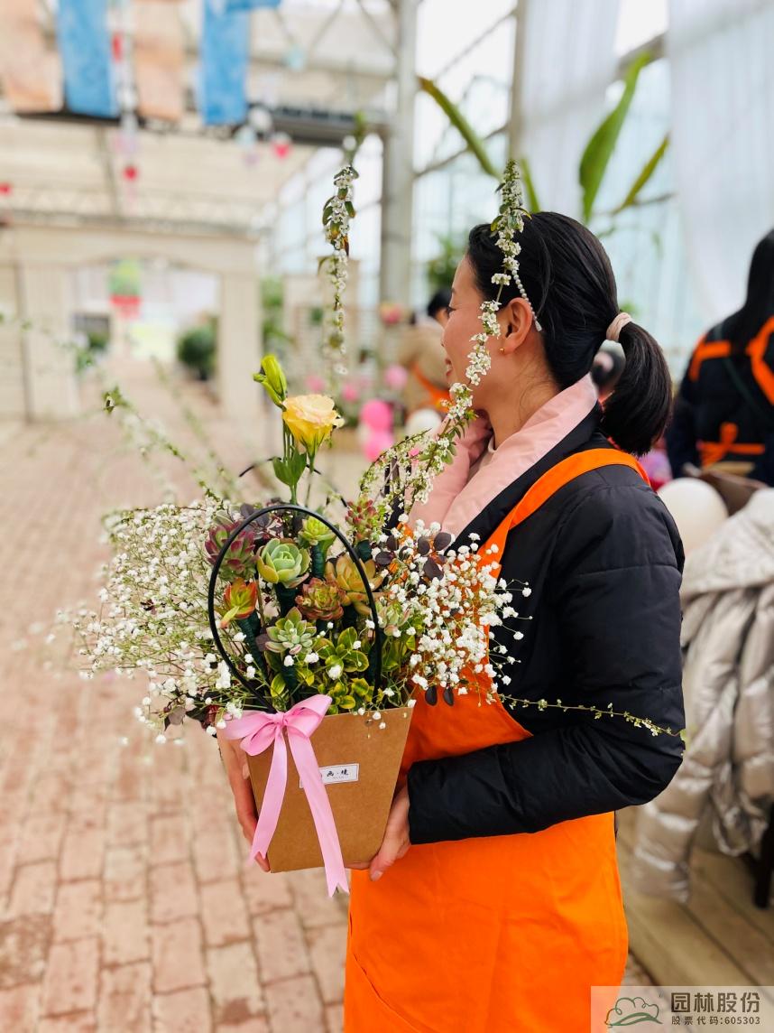 這些花材會(huì)像變魔術(shù)一樣組合成一盆盆精美的手拎禮品袋鮮花,如花藝師手上演示的這一盆,是不是很期待呢?