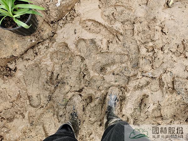 本方案落地地塊由于主要觀賞面與整體地勢相反,地塊易積水,且施工前期均為雨水天氣,種植土壤為黏質土,保水性極好,如同“彈簧土”一般,為前期地形整理工作增添了不少難度。施工團隊通過人工排水、設置排水緩坡、埋置排水管等多種方式扭轉地勢,解決花境景觀觀賞性與花境內部排水等問題。