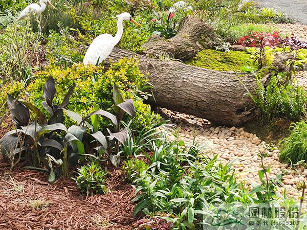 “澤·頌”花境景觀選取了濕地中三種類型,分別以木本花境、觀賞草混搭宿根植物、枯木苔蘚三種植物景觀模式,模擬自然濕地的灌叢、草甸、蘚類三種不同類別濕地景觀,通過豐富的花境植物材料及水鳥造型、枯木等的應用,表現近幾年來建設新時代美麗杭州、打造“濕地水城”、提升生態人文景觀建設過程中取得的成果。