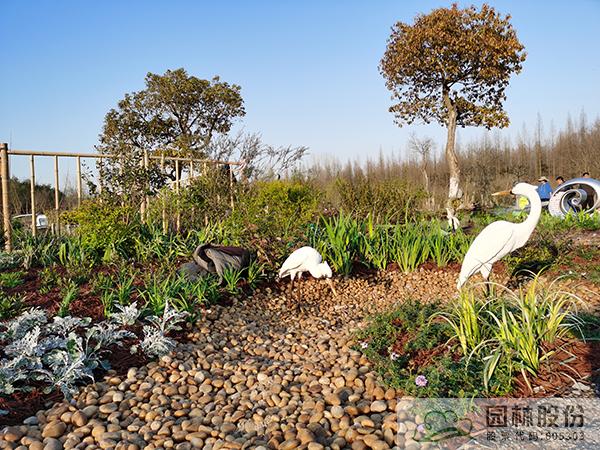 整個花境通過豐富的花境植物材料及白鷺造型小品、枯木等的應用,營造出“歸棹茭蘆葦岸,白鷺錦鱗為伴,閑臥水云間,但見碧波清淺”的幽雅濕地景觀。此次作品經過團隊小伙伴七日的日夜奮戰,最終得以完美呈現,并已于3月24日正式對外開放,歡迎大家前往參觀。