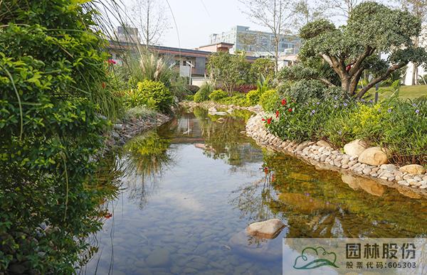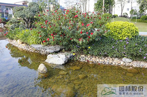 融入海綿城市理念打造的旱溪景觀,用鵝卵石鋪裝,點綴景石,岸邊種植造型水蠟、楊梅、蘆葦、蒲草、三角梅、黃金葉、黃金榕、朱蕉、扶桑花、變?nèi)~木、紅千層等當(dāng)?shù)剜l(xiāng)土植物,打造生態(tài)環(huán)保的地域特色景觀風(fēng)貌。