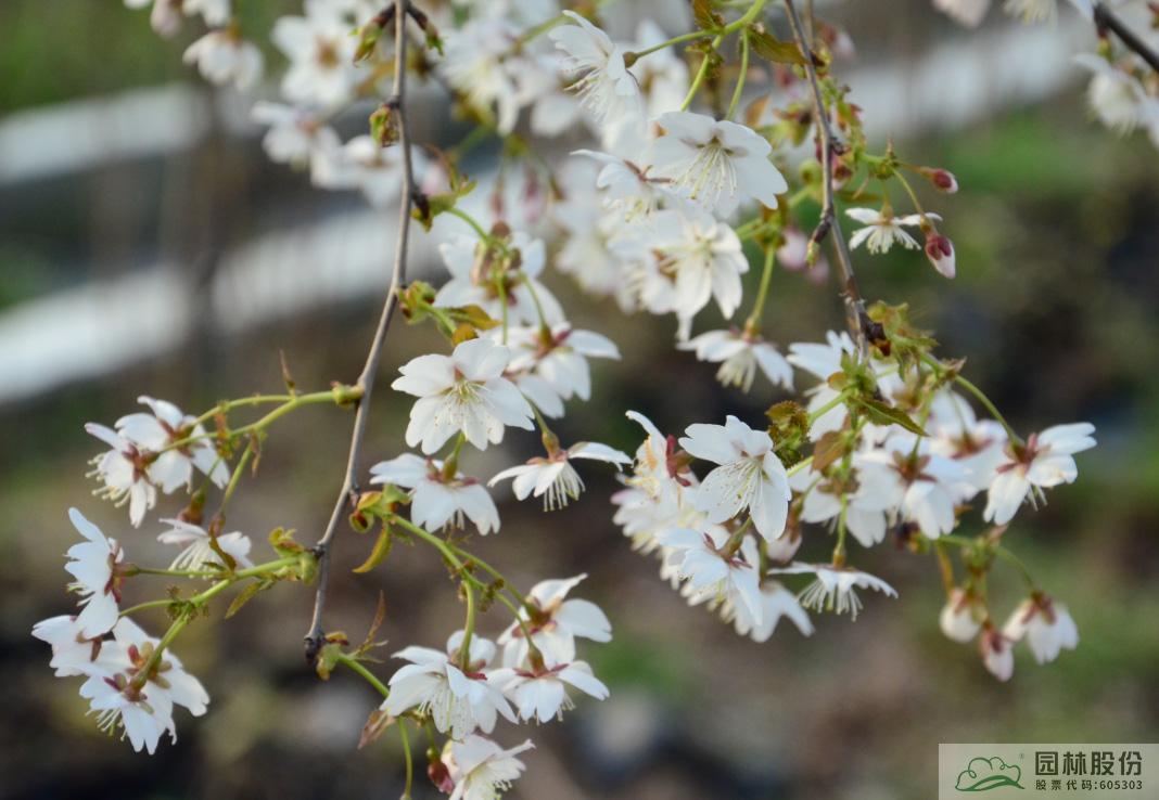 這些櫻花品種花色豐富,特色各異,其中,‘纖秀’為落葉小喬木,樹皮灰白色,小枝灰棕色;葉片卵狀橢圓形;花先葉開放,總狀傘形花序,每花序有花3~5朵,稀2朵;花梗長12~17mm,綠色;花瓣白色,或花瓣邊緣粉色,中下部白色,花徑2.5~2.8cm,核果紅色,成熟后直徑約1cm。花期2~3月。