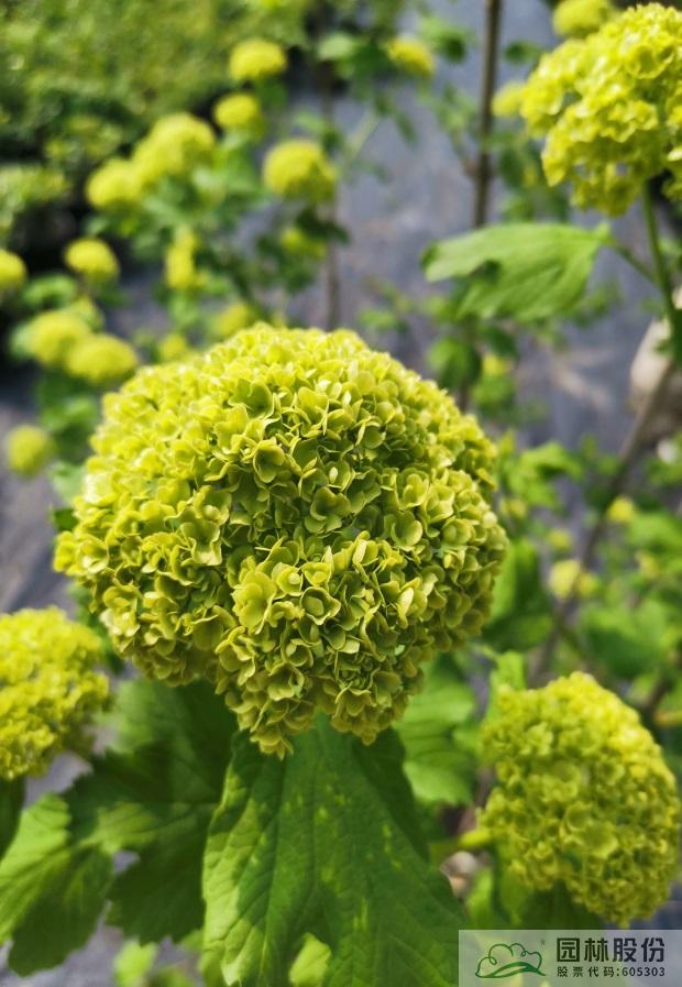 忍冬科莢蒾屬,落葉灌木。葉三裂,秋色葉紅色。聚傘花序,全為不孕花,花大且繁,花色初開(kāi)綠色,萌萌如綠豆糕,后逐漸變純白。植株萌芽力強(qiáng),耐寒耐熱,可耐-30℃低溫。生長(zhǎng)迅速,適合庭院觀(guān)賞。