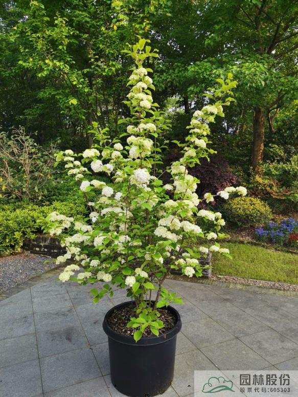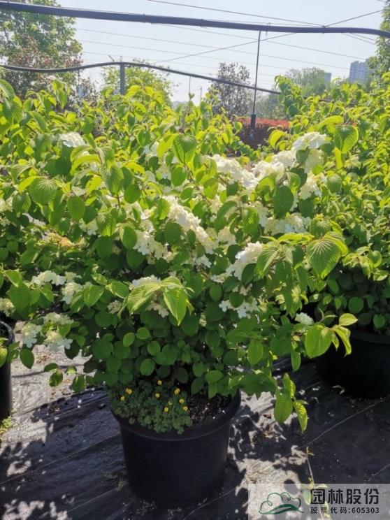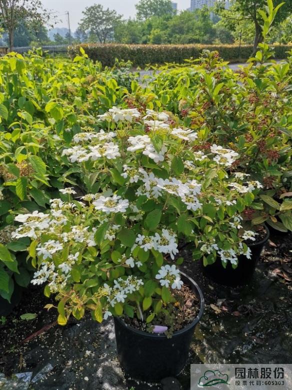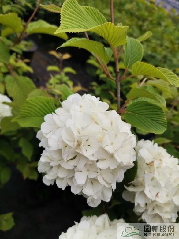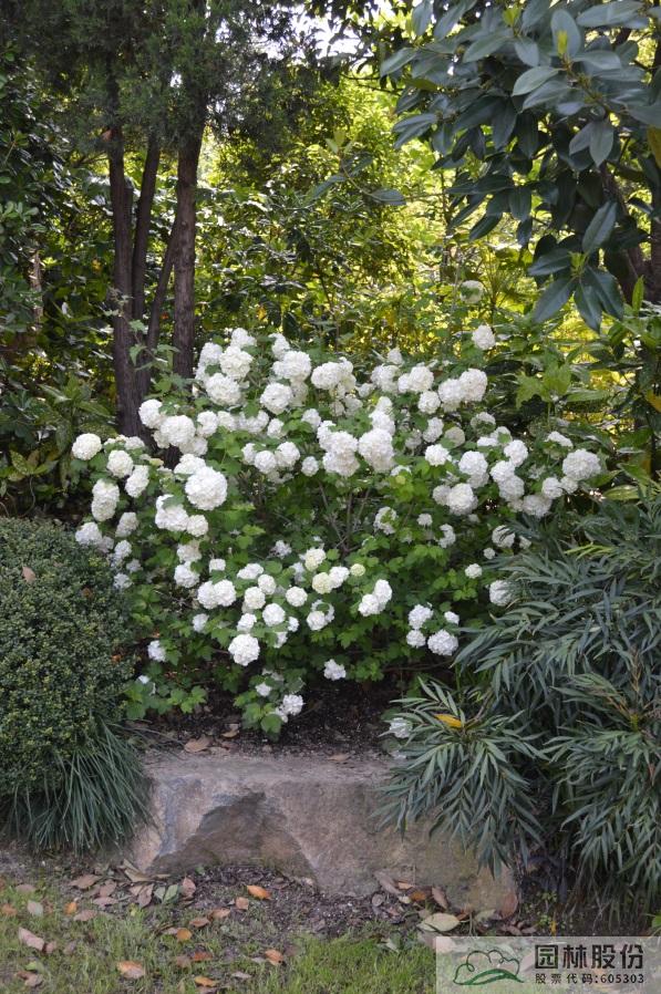 忍冬科莢蒾屬,落葉灌木,樹(shù)姿舒展。花序半球形,全為不孕花,開(kāi)花時(shí)滿(mǎn)樹(shù)白花猶如積雪壓枝,高潔素雅,花謝后則綠葉如碧,無(wú)論花葉均具有較好的景觀(guān)效果。生長(zhǎng)強(qiáng)健,喜歡散射光環(huán)境,適合工程應(yīng)用或庭院觀(guān)賞。