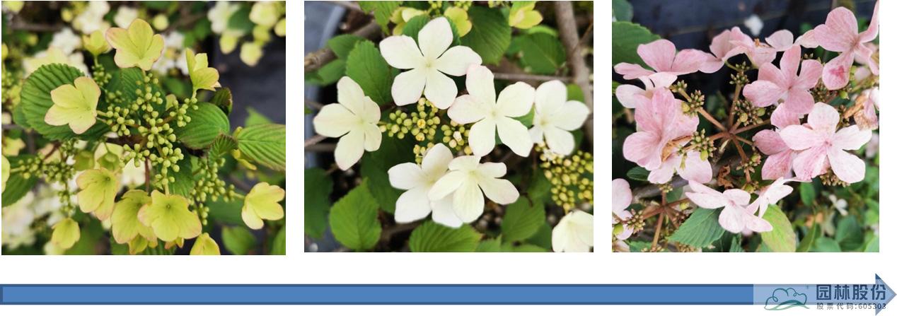 忍冬科莢蒾屬,落葉灌木,日本引進(jìn),株高可達(dá)2.5-3m。新葉成暗紅色,后呈綠色,秋色葉顏色多變。整個(gè)花序都是不育花,球形,花苞粉綠色,開(kāi)放后淡粉色,最后變成白色。它適應(yīng)我國(guó)大部分地區(qū)種植,生長(zhǎng)相對(duì)緩慢,適合園藝盆栽或庭院觀(guān)賞。