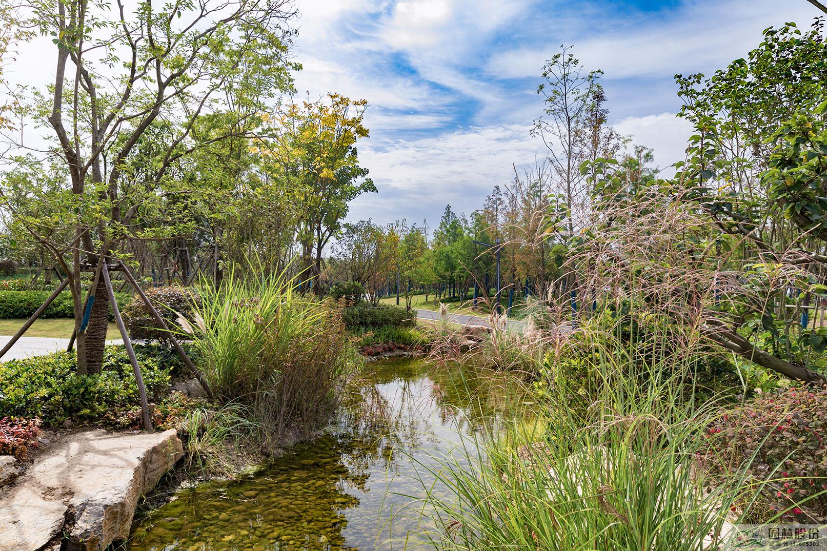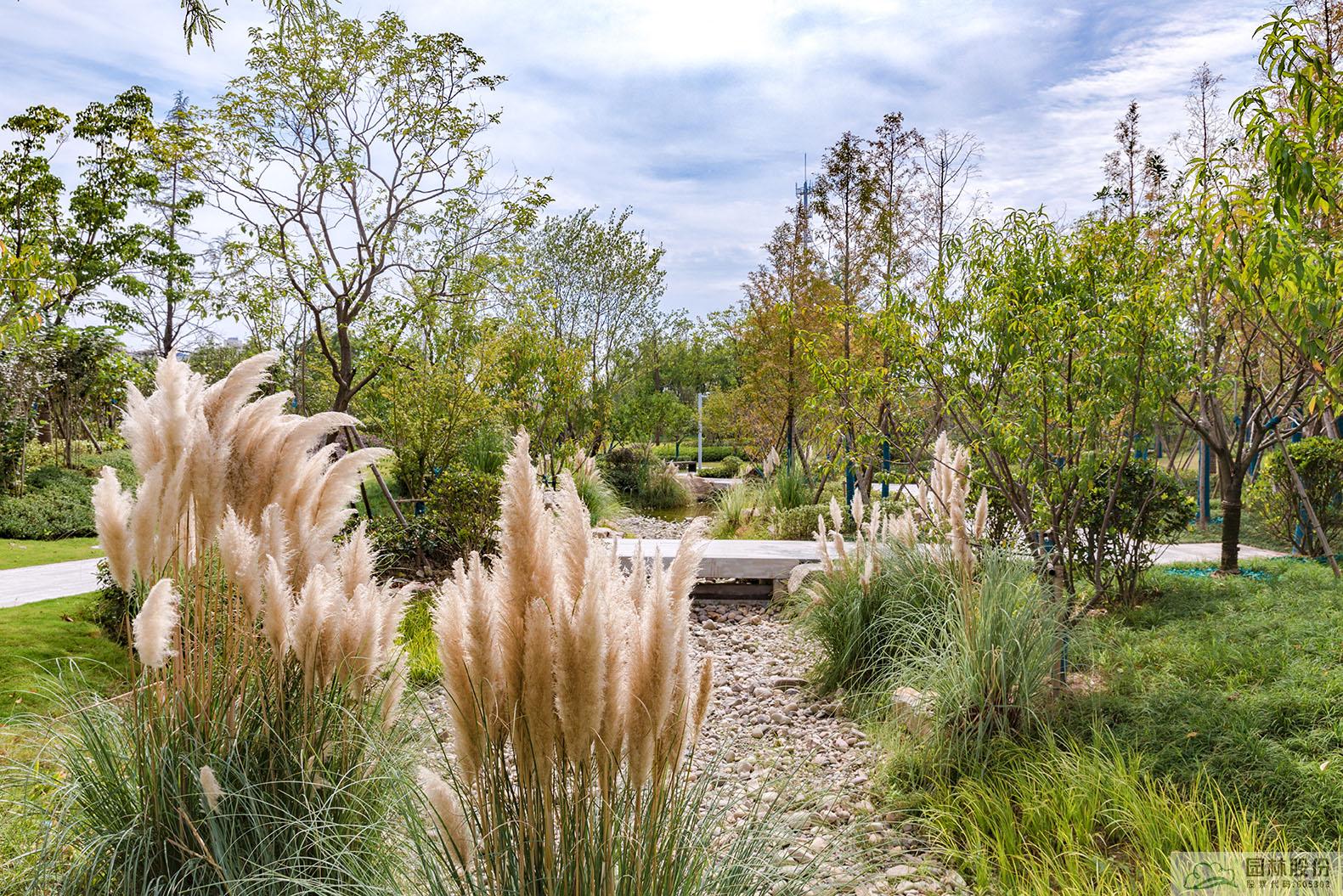 旱溪景觀(guān)同樣是海綿城市理念的應(yīng)用典范,下雨時(shí)蓄水,既可用于植物的日常澆灌,又能營(yíng)造出清新靈動(dòng)的水景;干旱時(shí),鋪滿(mǎn)鵝卵石的水底又可與周邊豐富的植物營(yíng)造出另一種園林意境。