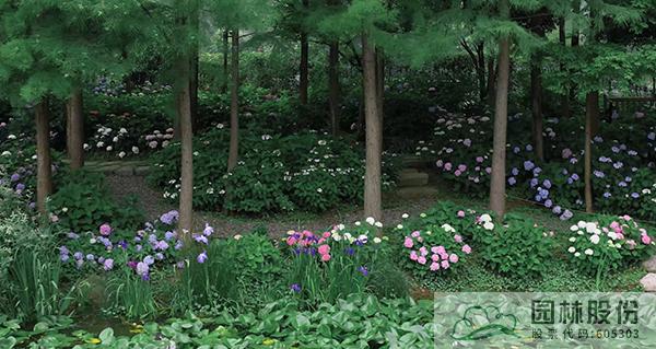 繡球園從原有的水杉林下覆蓋至整個北園。