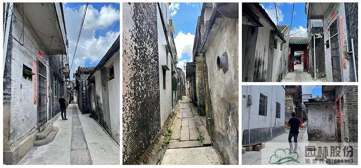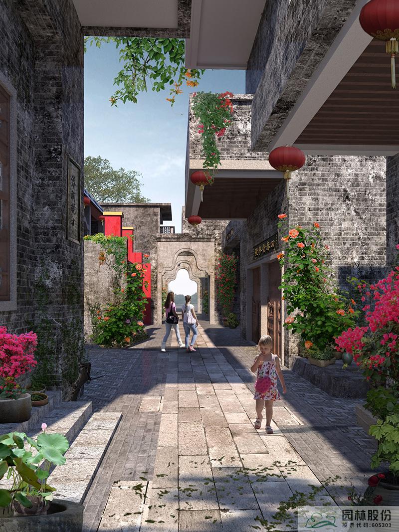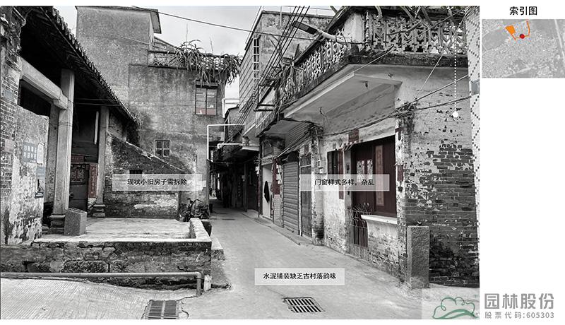 巷道改造現(xiàn)狀:現(xiàn)狀巷道為水泥路鋪裝,沿路缺少綠化,墻面磚砌樣式多樣,不統(tǒng)一,景觀效果不佳。