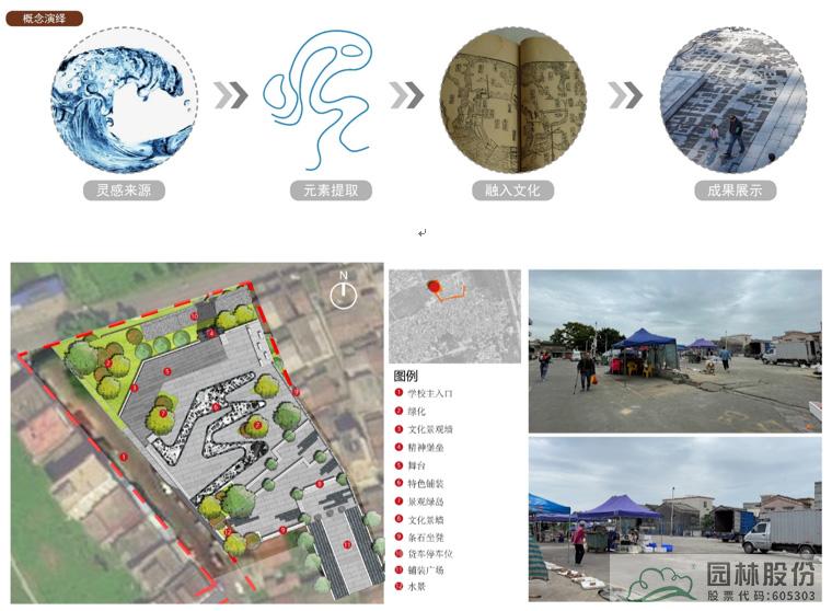 入口休閑廣場概念演繹設計說明:現(xiàn)狀場地主要為一片空地,由于南面是菜場,因此該場地在功能性上主要有貨車卸貨的功能,考慮村莊內可能舉辦大型祭祀活動或者紅白喜事,需要有大空間,所以在設計中留出了大片場地。因沿海城市,所以提取了海浪元素,結合當?shù)貧v史文化及村落肌理,做出如圖設計。