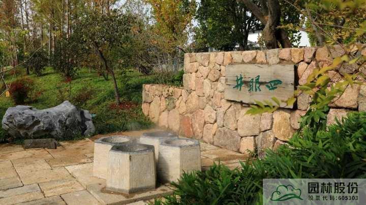 “問茶亭”正前方的幾株茶樹是茶園的點睛之筆,設計靈感取自“西湖龍井十八棵御茶”。