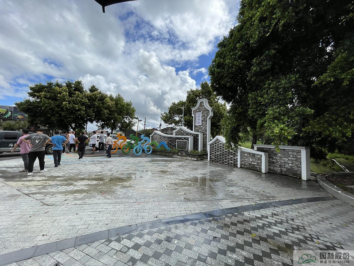 入口進入,是石咀防范匪患而建的黃泥百年碉樓,為凸出碉樓這一特殊的建筑,我們在碉樓設計開闊的,擁有與碉樓相關記憶符號的村口節點小公園。