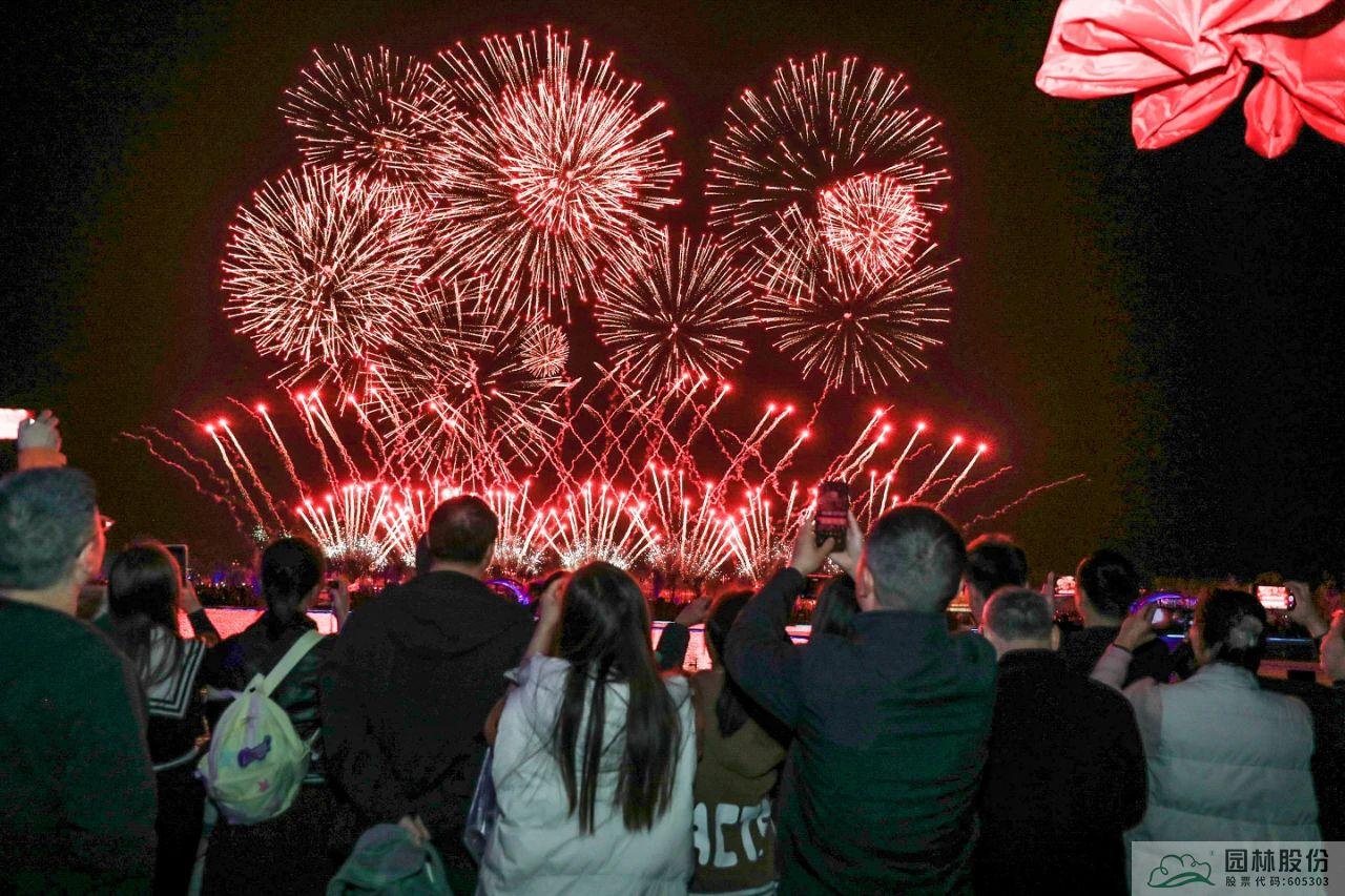 晚上8點,隨著五彩斑斕的煙花次第升空綻放,花海景區(qū)頓時變成了一個歡樂的海洋。