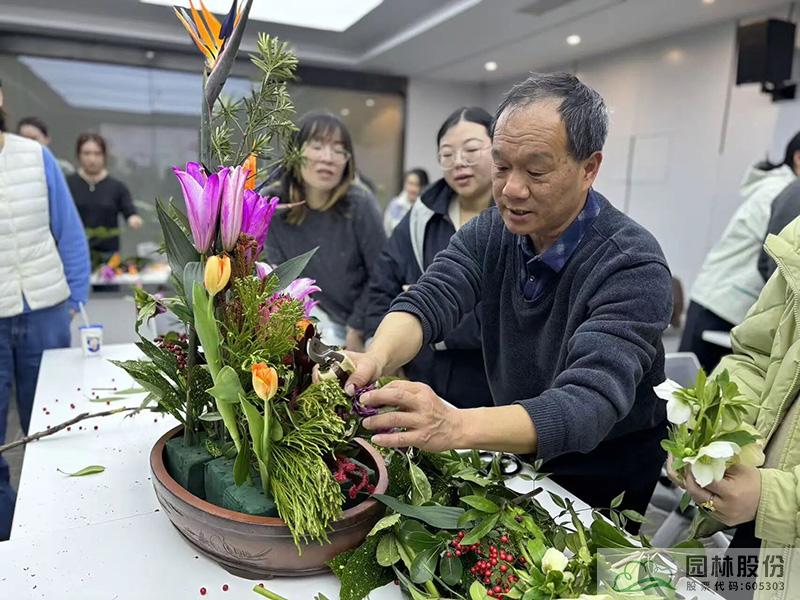 隨后,一場(chǎng)別開生面的插花藝術(shù)課堂拉開帷幕。江志清大師以生動(dòng)的語(yǔ)言,從插花藝術(shù)的基礎(chǔ)理論、色彩搭配技巧到花材處理方法等,娓娓道來(lái)。現(xiàn)場(chǎng)的女性員工們認(rèn)真聆聽,不時(shí)記錄要點(diǎn),沉浸在花藝的美學(xué)世界里。理論學(xué)習(xí)之后,大家以六人為一組,在江志清大師的指導(dǎo)下,動(dòng)手進(jìn)行插花創(chuàng)作。剪刀輕剪,花枝舒展,巧手翻飛間,一朵朵鮮花被賦予了新的生命。大家自由發(fā)揮創(chuàng)意,將普通的花材變成一件件獨(dú)具匠心的花藝作品。活動(dòng)現(xiàn)場(chǎng)花香四溢,歡聲笑語(yǔ)不斷,每一位女性都在創(chuàng)作中找到了屬于自己的那份寧?kù)o與自信,更在團(tuán)隊(duì)協(xié)作中增進(jìn)了彼此的溝通與默契。