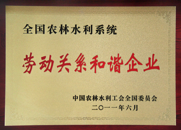 公司榮獲“全國農(nóng)林水利系統(tǒng)勞動關系和諧企業(yè)”稱號